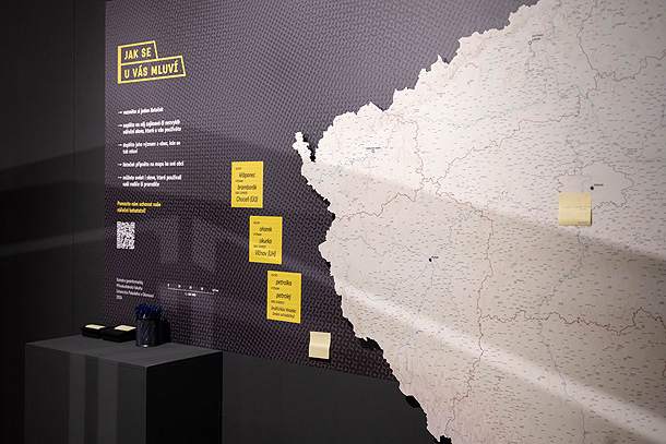Expozice je sice postavena hlavně na textech, protože o ty jde při výzkumu dialektů především, přesto se organizátoři snažili o co nejvíce interaktivní pojetí. Vedle nezbytných výstavních panelů připravili také gauč a křesílka se stolkem, kde může každý návštěvník vyplnit dotazník, a tím se zapojit do jazykovědného šetření. Zároveň má možnost přilepit na velkou nástěnnou mapu lísteček s výrazem, který se používá právě v regionu, odkud pochází.